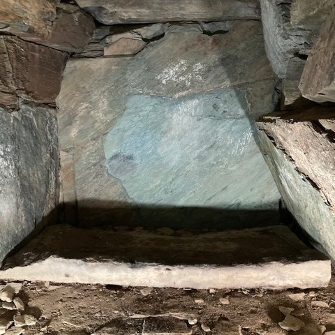 童男山古墳 23号墳こちらは22号墳。奥壁に青い石が選ばれています。