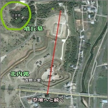 そして、特筆すべきことは、吉野ヶ里がだんだん大きくなって、3世紀になって壕が広くなっていく時、何故か日吉神社のある墳丘は外環壕の中に組み込まれなかったということです。