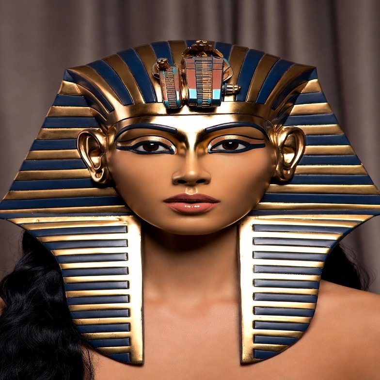 せっかくAIが登場したので、ツタンカーメンの黄金のマスクをリアルな人間にしてもらいました。それが次の顔です。